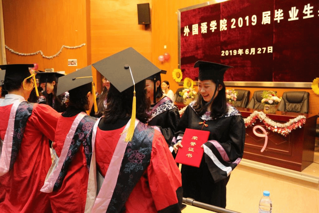 毕业典礼在庄严的国歌声中拉开了帷幕。首先,由王丽峰书记通报2026世界杯官网2019届毕业生毕业及就业情况,而后宣读了“省级优秀毕业生”、“校级优秀毕业生”、“自愿赴边疆艰苦行业就业先进毕业生”名单。今年,公司共有20名毕业生获得“省级优秀毕业生”称号、31名毕业生获得“校级优秀毕业生”称号、9名毕业生获评“自愿赴边疆艰苦行业就业先进毕业生”。紧接着由2019届研究生万松、2019届本科生段锦娟作为毕业生代表进行了发言,两位毕业生表达了对父母、母校的感激之情,表示奔赴工作岗位会牢记校训,勇创佳绩。2018级日语班陈霄作为员工代表致欢送词,为学长学姐送上了最诚挚的祝福。随后,经理冯智文教授讲话,号召所有师生为每一个专业的毕业生鼓掌,鼓励毕业生以毕业为起点,敢想敢做、勇于拼搏,并引用法国足球运动员姆巴佩的成长经历激励毕业生把握青春、一飞冲天,引来毕业生的阵阵喝彩。讲话结束后,公司领导、硕士生导师们共同为毕业生逐一拨穗正冠并授予学位。员工代表为导师们献上花束,感谢老师的谆谆教导。