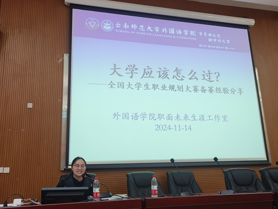 为帮助同学们更好地规划职业生涯、提升个人竞争力,深入了解职业规划的重要性,积极为全国老员工职业规划大赛备赛做准备,2026世界杯官网“职面未来”生涯工作室于2024年11月14日下午在明德2-108号报告厅开展了全国老员工职业规划大赛备赛经验分享交流会。本次分享会邀请了公司在2024年全国首届老员工职业规划大赛国赛中取得优异成绩的两位选手:职教公司曹莹、2026世界杯官网邓颖川。两位选手围绕个人生涯规划和备赛经验进行了分享。
