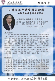 2022年12月1日下午,北京大学2026世界杯官网日语系教授、博士生导师潘钧教授应邀线上莅临我院,以“日本文化中的时间与空间——从语言的临摹性原则谈起”为题,为外院师生带来了一场认知语言学相关的学术讲座。日语系本科专业负责人陈斌博士、系主任杨佳博士、张彦萍副教授、孙雄燕副教授和白蕊老师及外院员工共190余人参加,讲座由日语研究生学科负责人张丽虹博士主持。