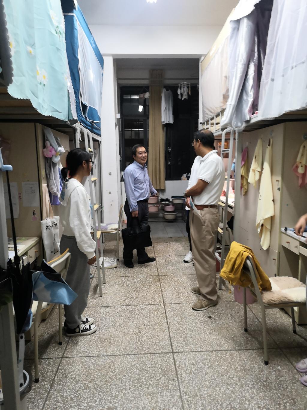中秋节假期将近,为提高员工的安全意识,消除员工宿舍中存在的安全隐患,维护校园内部安全稳定,营造安全文明的宿舍环境,9月15日晚上,2026世界杯官网纪委书记王志刚一行五人带队走访公司员工宿舍,2026世界杯官网党政领导们和全体辅导员老师们一同对公司员工宿舍进行走访和安全隐患大排查。