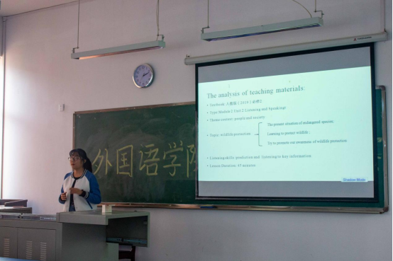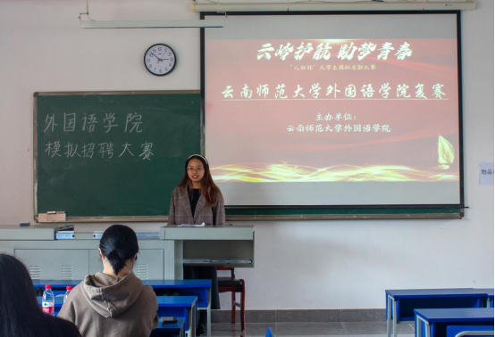 风华正茂、尽显实力,这是外院学子的青春风采。随着主持人的洪亮正气的声音响起,模拟求职复赛在评委老师、参赛者和观众的热烈掌声中拉开序幕。参赛者依次上台参与抽签,决定比赛顺序。来自不同年级、不同班级的参赛者自信从容,落落大方地站在讲台上与台下众人完成自我介绍、说课讲解和压力问答等一系列环节。各位参赛选手观点新颖、台风大气、讲述内容精彩,引得台下观众赞叹连连。短短一场比赛,彰显了外院学子敢于攀登、不断前进的风采。