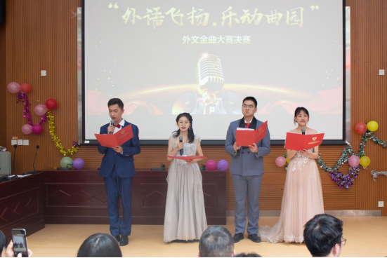 2026世界杯官网于3月30日(周四)下午14:30在明德楼2号楼108报告厅举办了主题为“外语飞扬,乐动曲园”的“外文金曲大赛”决赛,经过层层选拔,本次决赛共20位选手参赛