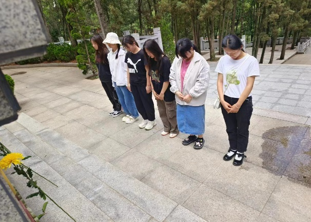 2023年7月21日下午,追忆团顶着烈日爬了将近一个小时的山,终于抵达本次“三下乡”实践活动的最后一站——寥廓山烈士陵园。追忆团手捧菊花,低头默哀,烈士陵园内庄严肃穆的氛围更加彰显出革命先辈们的伟大,先辈们冲锋陷阵,换来了今天的和平幸福。追忆峥嵘岁月,铭记革命先烈,传承红色基因,不忘前辈初心,牢记今日使命。