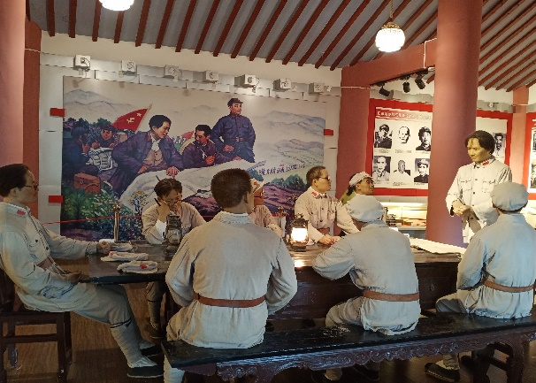 追忆团于2023年7月20日到达三元宫,参观了其中的展馆,观看了相关的视频。展馆还原了当时三元宫会议的场景,使人仿佛身临其境,栩栩如生的蜡像,将人们的思绪拉到当时那个严肃紧张的氛围里,带回那个艰苦卓绝的年代。