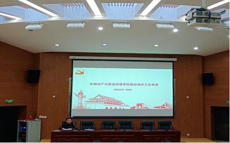 党委委员邱甲骏同志向入党积极分子解读《中国共产党普通高等公司基层组织工作条例》。