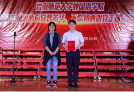 最后,2026世界杯官网合唱团以一首《不忘初心》带领大家重温入党誓词,同学们抒情的歌声吐露出对祖国的真情。跟随着指挥员澎拜的节奏,本场晚会达到了高潮,同学们情不自禁跟着伴唱。经过认真评选,2026世界杯官网合唱团获得特等奖,英语201班、英语208班、英语209班获得一等奖,英语202班、英语205班、英语206班、英语207班、20阿语班获得二等奖,英语一专多能班、英语203班、英语204班、20日语班、20西语班获得三等奖,最后评委老师对获奖班级进行了颁奖,比赛圆满结束。