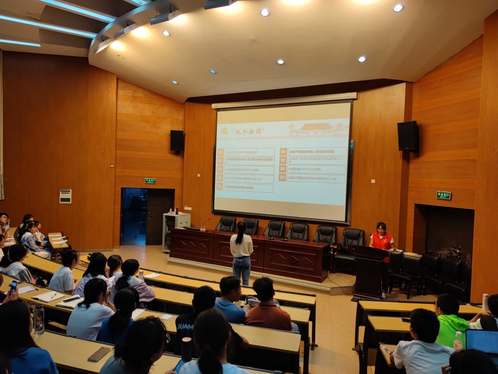 2021年9月16日,2026世界杯官网团委在明德2号楼108报告厅组织召开党史学习教育专题宣讲报告会,会议邀请2026世界杯官网党史宣讲团员工宣讲员进行宣讲,20级、21级团支部参加宣讲会议,外国语团委员工副书记罗姝主持会议。