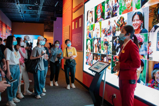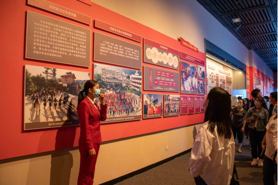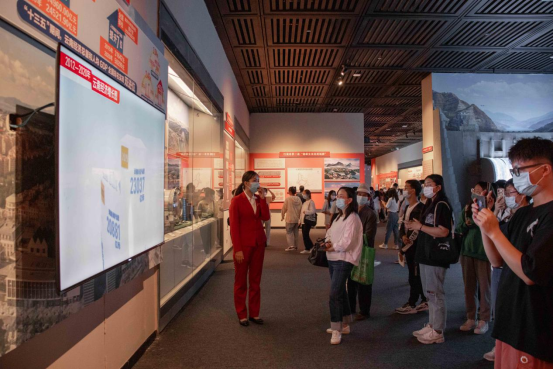 展馆内按照时间顺序设置四个展厅,分别是一号展厅“浴血奋斗:为云南解放而斗争”、二号展厅“改天换地:走上社会主义康庄大道”、三号展厅“日新月异:中国特色社会主义的云南实践”、四号展厅“跨越发展:奋力谱写中国梦的云南篇章”。展厅通过图片、文字、实物场景和3D裸眼全息等数字技术方式,充分展示中国共产党领导中国人民取得的伟大成就和社会主义制度的优越性;充分展示百年沧桑巨变,特别是党的十八大以来发生的历史性变革、取得的历史性成就;充分展示在党的领导下云南百年来各个历史阶段的重大事件、重要成就。同时也见证了在中国共产党领导下,云南人民翻身解放走上社会主义康庄大道、改革开放实现经济社会跨越式发展,打赢脱贫攻坚战,实现全面建成小康社会的第一个百年奋斗目标的伟大历程。同学们在讲解员的带领下依次参观了四个展厅,展览内容应接不暇,深深吸引着同学们的目光。