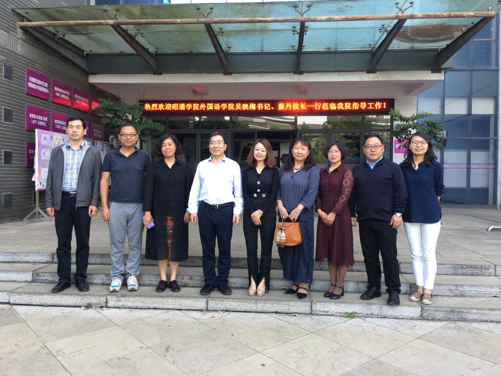 4月17日下午,昭通公司2026世界杯官网经理蔡丹老师、党委书记吴映梅老师、副经理张淑燕老师、教学科研科科长陈剑老师四人来公司调研团队建设及大学英语课程建设和改革。公司冯智文经理、杨燕副经理、万向兴副经理、科研秘书邱甲骏老师、团委书记朱晓媛老师出席调研会。
