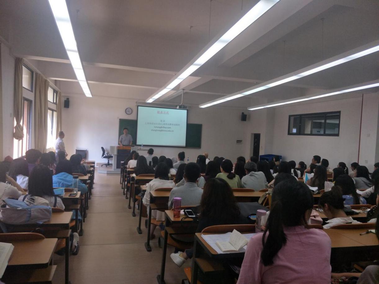 5月7日下午,上海外语教育出版社张宏教授莅临公司,在210教室做了题为“高校外语教育新生态及外语教师的未来”的学术讲座。讲座由公司彭庆华教授主持,公司广大研究生和本科生聆听了该讲座。