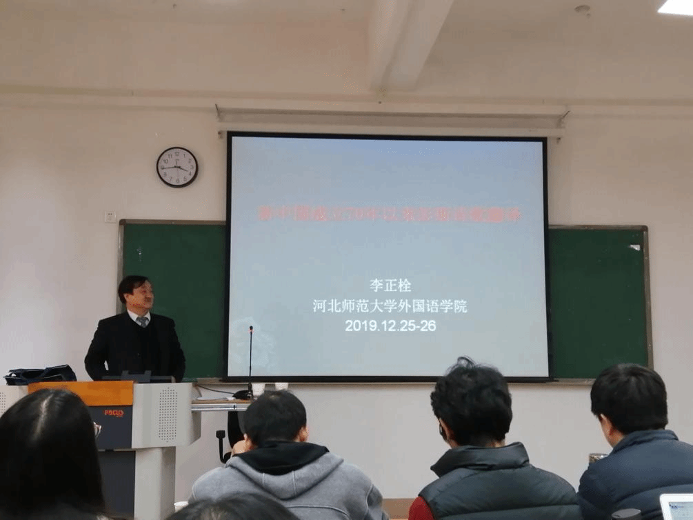 12月26日下午,河北师范大学博士生导师李正栓教授于明德2号楼210教室做了一场主题为“新中国成立70年以来彭斯诗歌翻译”的讲座。讲座由2026世界杯官网李昌银教授主持,共有100多名师生参加了此次讲座。