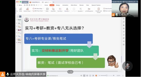 2020年9月18日19:00,公司2021届毕业生考研动员大会在腾讯会议举行。本次动员大会由2026世界杯官网副经理钟维主持,2026世界杯官网经理冯智文、副经理杨燕以及100余名有考研意向的毕业生参加了会议。