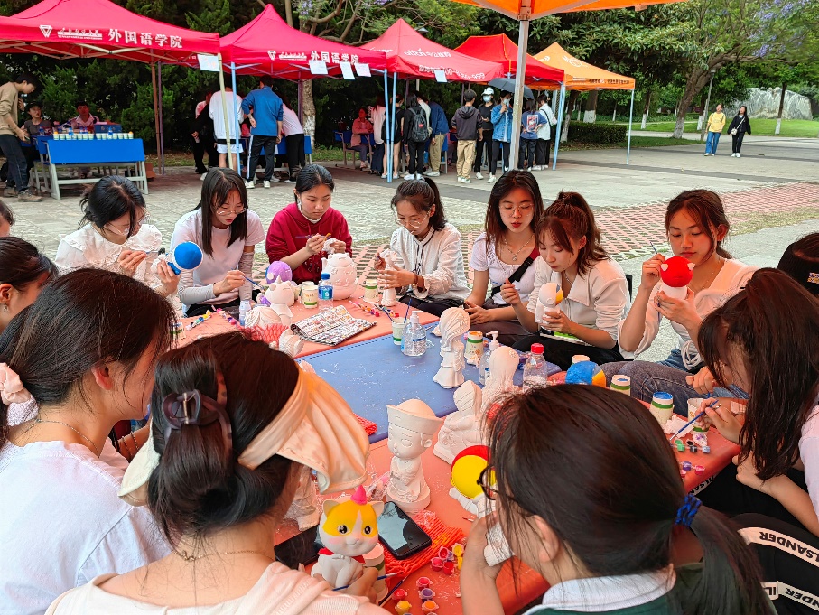 这次活动当中,师生们积极参加游园活动,在游戏中赢印章兑换彩绘石膏像,活动各具特色:联想ABC、英语对话自走棋,寓教于乐让同学们将英语学习的内容运用到游戏中;小猫钓鱼,锻炼了大家的肢体协调、耐心还有最重要的团队合作能力;正话反说,考验老师同学们的应变反应能力,掀起了语言组织的“头脑风暴”。游园会当中大家积极参加活动兑换手绘石膏像,聚在桌前细心填色,填色结束后大家看着自己的作品,满心欢喜。