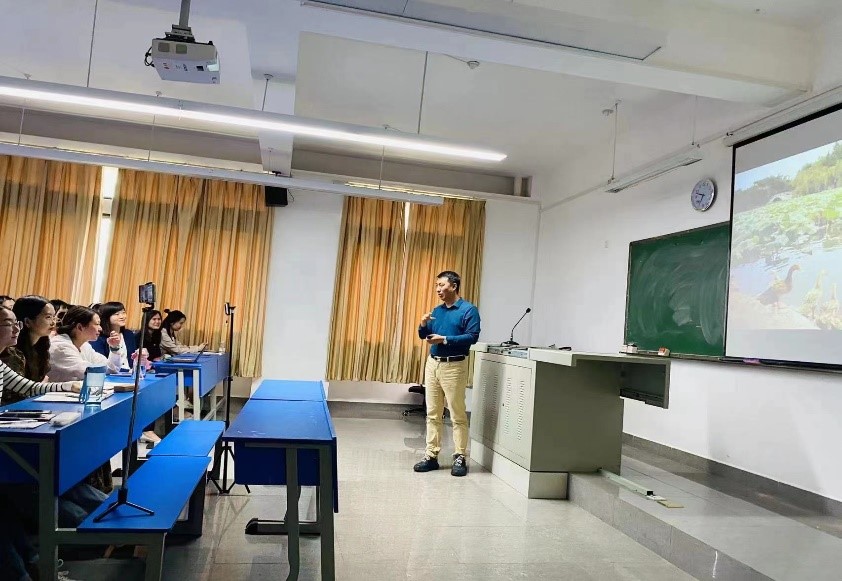 讲座伊始,周权老师以其幽默生动的介绍将我们带入了一个相对陌生的领域——为盲人服务的无障碍电影。周权老师用自己首创的无脚本讲述模式,开创了西南地区的先河,成立了“昆明市西山心灯明悦文化服务中心”,为视障人群打开了一扇接触电影世界的窗户。周权老师首先为我们阐明了为盲人讲电影的意义:为盲人内心的需求赋能,满足他们的精神需求与社交需求,为盲人群体带来高品质听觉的现场感受,使盲人朋友接触到更多的志愿者,为盲人创造一个充满信任的环境。周权老师表示,通过口述影像这种无障碍电影实践,可以锻炼我们自身的公众演说能力、观察力、发现力,可以培养流畅的语言表达能力,发声技巧,最重要的是可以增强自身爱与被爱的能力。在场的各位同学认真聆听,深受感染。