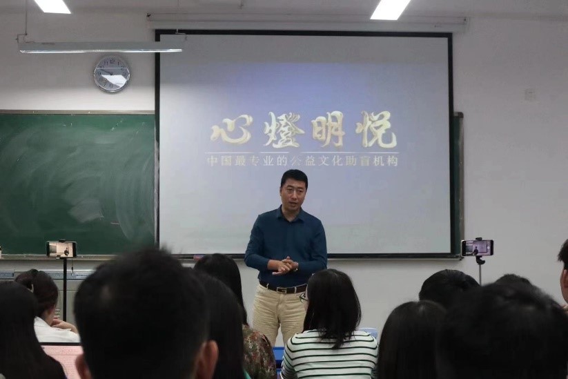 周权老师还为我们介绍了成为一名口述影像实践者所需要的技术要求:要看懂电影,学会换位思考,讲述时要使用精炼的语言、适当的语速,能与电影人物进行情感匹配,要有交代与概括的能力,其中最主要的还是要熟能生巧,多加练习。“心灯明悦公益服务中心”面向全社会招募助盲志愿者,因此周权老师也向我们介绍了所需志愿者的分类及要求,并呼吁大家加入公益助盲大家庭!活动最后,由李彦老师做了本次讲座的总结陈词。李彦老师认为周权老师的口述影像实践和翻译密切相关。口述影像属于Jackobson(1959)所提出的符际翻译的范畴,即语言符号和非语言符号之间的转换。口述影像的研究在国外已成为一个热门领域,但是在国内刚刚起步,研究潜力巨大,值得进一步探索。此外,口述影像不仅有其研究价值,更有其人文价值。通过这次接触口述影像实践,让同学们注意到盲人的存在,关注到盲人文化和情感的需求,这是本次讲座最大的价值所在。盲人看不见,但是他们需要被看见。正如“心灯明悦”的名字所展示的那样,通过口述影像,为盲人黑暗的世界点亮爱与美的灯,让他们感受到光明,感受到这世界的美好和愉悦,是非常有意义的实践。