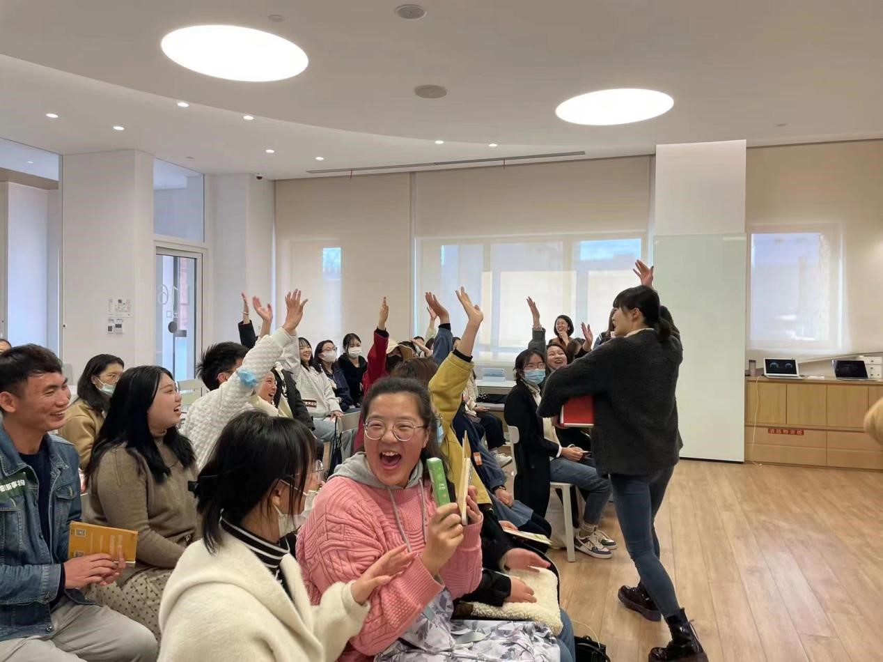 活动第三个环节,心霖公社教师、师大优秀毕业生亲自为同学们展示了一节真实的少儿英语课。同学们参与度极高,课堂气氛高涨,欢笑不断,收获颇多。