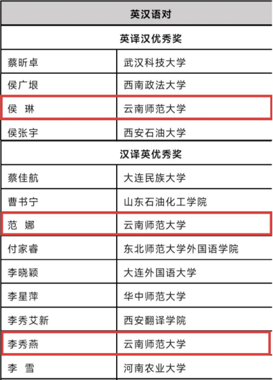 2025年10月20日,第三十七届韩素音国际翻译大赛获奖名单正式公布。公司学子在此项赛事中表现优异,凭借扎实的语言功底和出色的翻译能力,从众多参赛者中脱颖而出。其中,23级英语笔译研究生范娜(指导教师冯智文老师)、24级学科教学(英语)研究生李秀燕(指导教师侯云洁老师)荣获汉译英优秀奖;24级日语笔译研究生杜妮(指导教师杨佳老师)、24级日语语言文学研究生魏杨坤(指导教师孙雄燕老师)荣获日译汉优秀奖;23级中国史研究生侯琳荣获英译汉优秀奖。